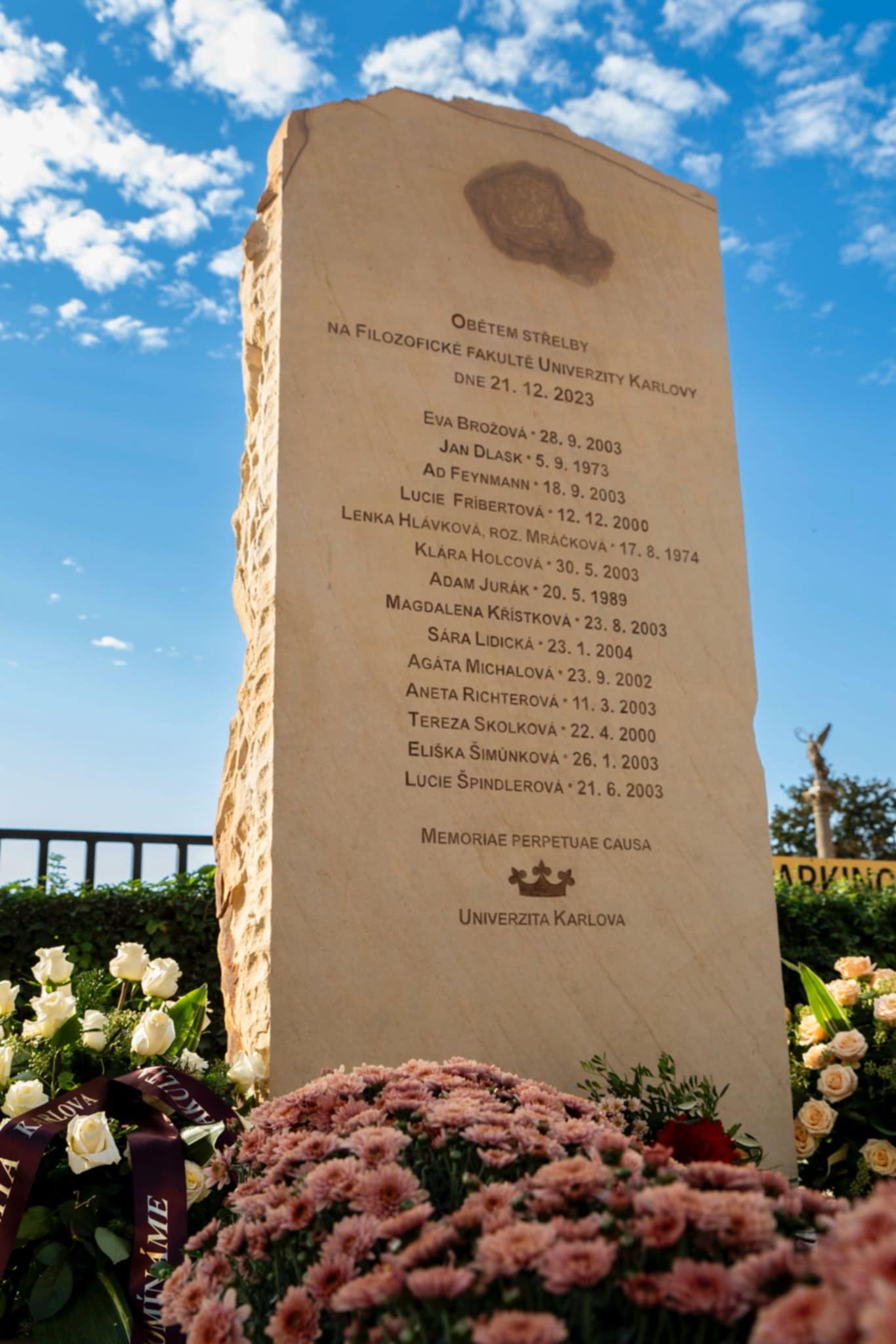 Kámen pro pamětní desku obětem útoku na Filozofické fakultě Univerzity Karlovy v Praze
