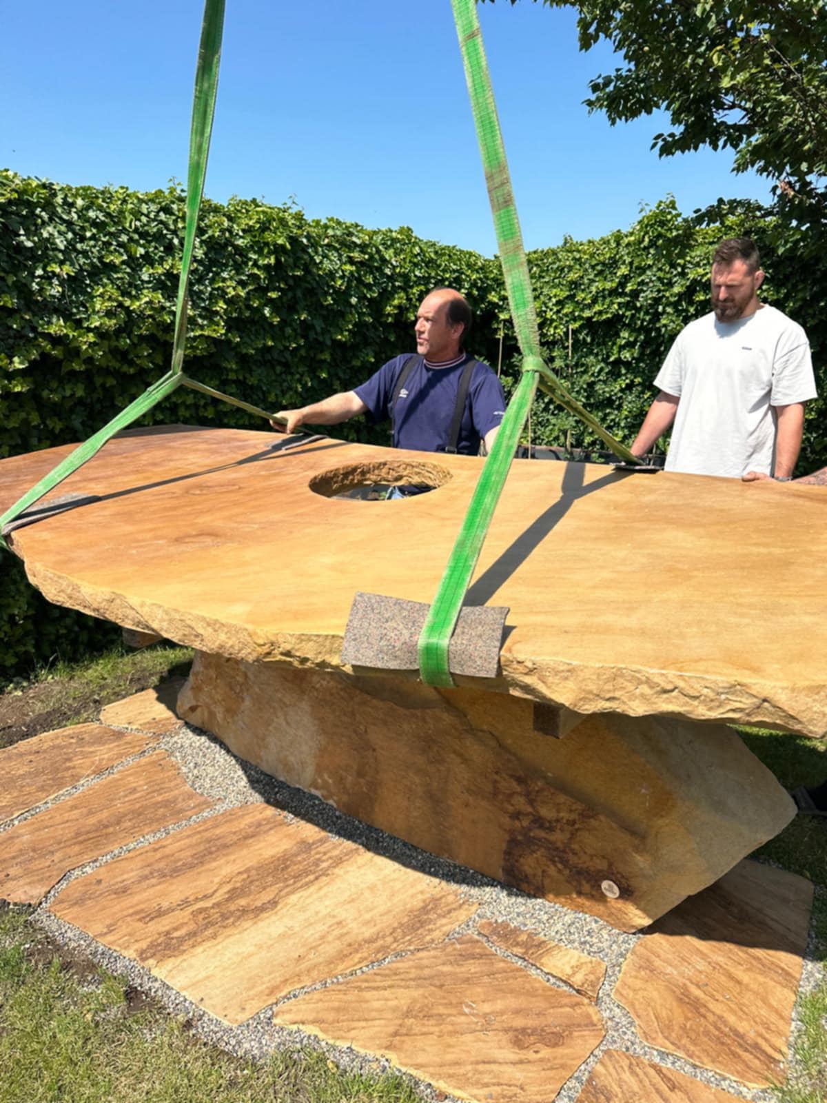 Tak vznikl jedinečný masivní stůl z pískovce z lomu Vyhnánov – více než tři metry dlouhý, o hmotnosti přes jednu tunu. Výjimečný kus, který podle Lukášových slov „má vlastní charakter“.